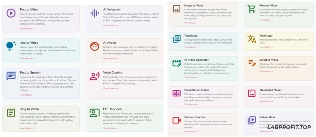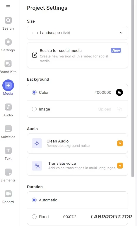 Ее сильная сторона — быстрое преобразование текстового контента в видеоряд, что делает платформу особенно полезной для маркетологов, работающих с лендингами и промоматериалами.