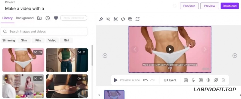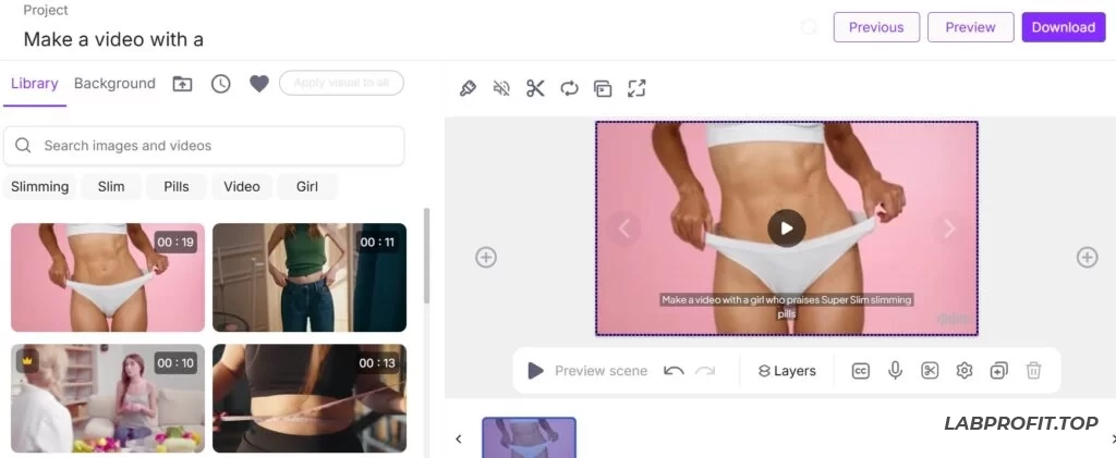 После этого нейросеть адаптирует шаблон под запрос, создавая основу ролика.