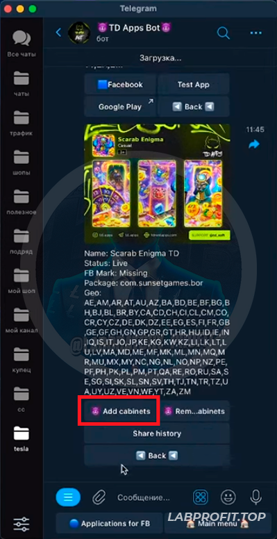 В пункте "Название приложения", выбираем то, которые мы ранее расшарили через TD Apps Bot. В моем случае - это Scarab Enigma.