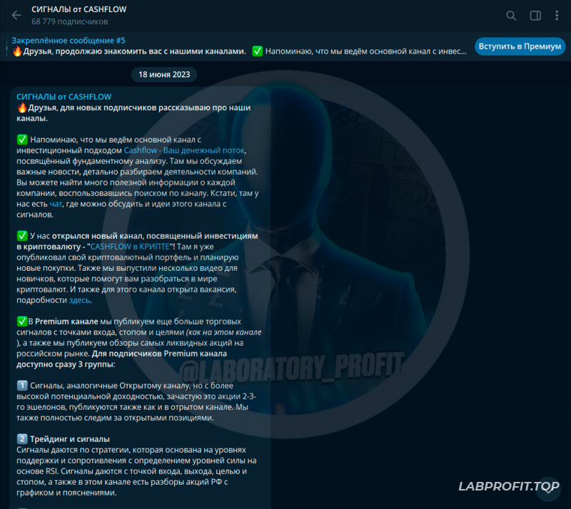 Создание истории - для привлечения пользователей создается красивая история, которая заставляет их поверить в экспертизу автора канала. Это может быть история о работе капера в европейской конторе или о возмездии за увольнение с работы.